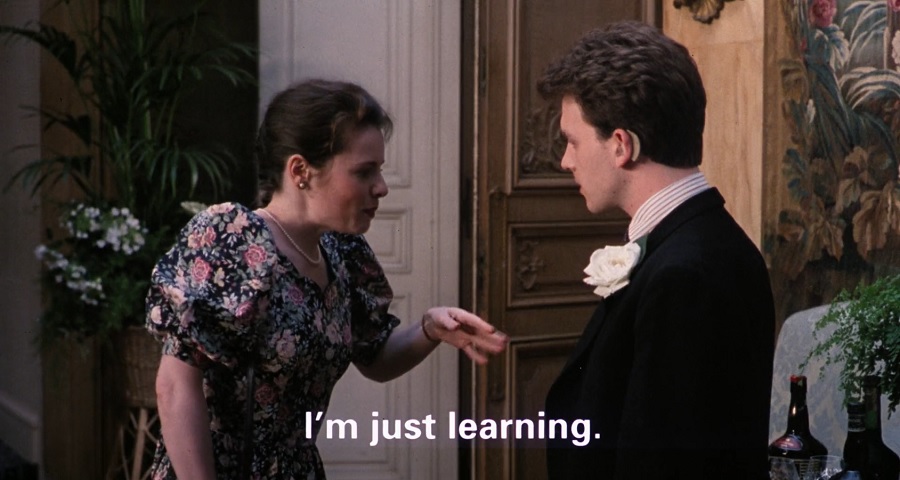 ในบรรดาคู่รักทั้งหมด ผมชื่นชอบสุดก็คือ David กับ Serena (รับบทโดย Robin McCaffrey) เพราะการที่ฝ่ายหนึ่งหูหนวกเป็นใบ้ ไม่สามารถสื่อสารด้วยการพูดคุยกับใคร แต่หญิงสาวพยายามจะ ‘เรียนรู้’ ภาษามือ แสดงถึงการให้ความสนใจ ยินยอมปรับตัวเข้าหา สามารถเริ่มต้นพูดคุย แม้สนทนาผิดๆถูกๆ (สลับตัวอักษร M กับ N จาก make เป็น nake, nice เป็น mice) สักวันพวกเขาก็จักสามารถเข้าใจกันและกัน