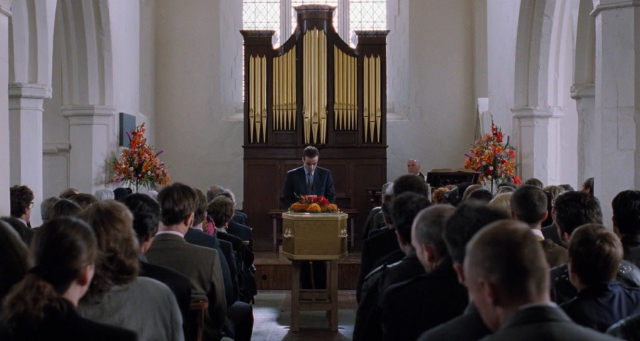 นี่เป็นช็อตที่ผมชอบมากๆเลยนะ เอาจริงๆก็ตั้งแต่นาฬิกาปลุกเต็มบ้าน พอมาถึงโบสถ์ St Bartholomew-the-Great ค่อยตระหนักว่าเป็นครั้งแรกที่ Charles ตื่นก่อนเวลา! ทำให้พวกเขามีเวลาเตรียมตัว ดื่มกาแฟ ทานอาหารเช้า ยัง…สุสานอีกแล้ว! แต่ผมมองนัยยะของช็อตนี้คือ เพื่อนกันตราบจนวันตาย