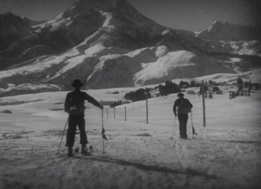 การเล่นสกี (Skiing) คือการใช้สกีร่อนไปบนหิมะเพื่อการเดินทาง กิจกรรมสันทนาการ กิจกรรมพักผ่อนหย่อนใจ, ผมมองนัยยะของกีฬานี้คืออิสรภาพชีวิต การปลดปล่อยตนเอง ปีนป่ายไปถึงจุดสูงสุดแล้วไถลลงสู่เบื้องหลัง ให้แรงโน้มถ่วงนำพากลับสู่จุดเริ่มต้น … คิดแบบเสื่อมๆมันก็คือการปลดปล่อย … สองหนุ่มพยายามเกี้ยวพาราสีหญิงสาวก็เพื่อ … 7th Heaven (1927)