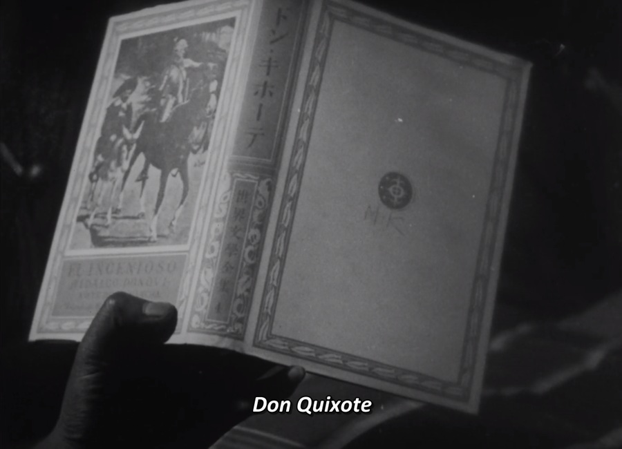 ผมไม่ค่อยแน่ใจความสัมพันธ์ระหว่างหนังเรื่องนี้กับการอ้างอิงถึง Don Quixote (1605, 1615) ของ Miguel de Cervantes ต่างเป็นตัวละครประเภท Idealism คล้ายๆกันกระมัง? แต่ตัวอักษรเขียนหลังปก M.K คือชื่อย่อของ Kenji Mizoguchi ผู้กำกับจากสตูดิโอคู่แข่ง Nikkatsu
