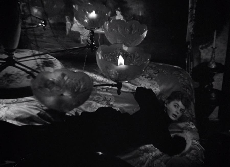 A thriller soaked in paranoia, Gaslight (1944) is a period films noir that, like Hitchcock’s The Lodger (1927) and Hangover Square (1945), is set in the Edwardian age. It’s interesting to speculate about the prominence of a film cycle in the 1940s that can be described as ‘Don’t Trust Your Husband‘. It began with three Hitchcock films: Rebecca (1940), Suspicion (1941), and Shadow of a Doubt (1943), and continued with Gaslight (1944) and Jane Eyre (1944), Dragonwyck (1945), Notorious (1946), The Spiral Staircase (1946), The Two Mrs. Carrolls (1947), Sorry, Wrong Number (1948) and Sleep, My Love (1948). All of these films use the noir visual vocabulary and share the same premise and narrative structure: The life of a rich, sheltered woman is threatened by an older, deranged man, often her husband. In all of them, the house, usually a symbol of sheltered security in Hollywood movies, becomes a trap of terror.