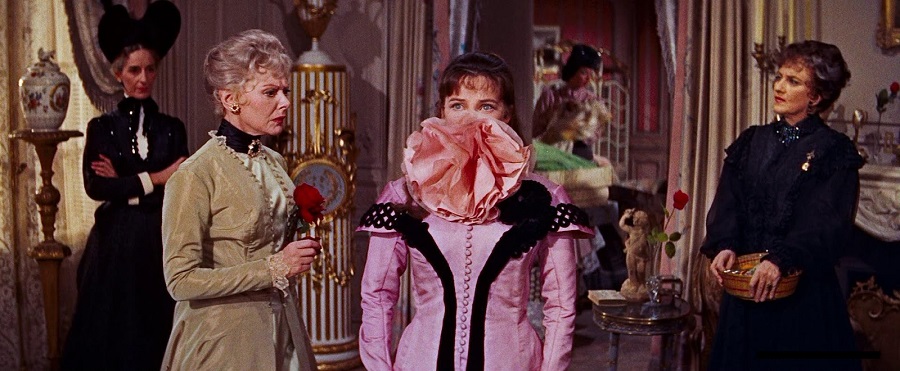 หนังจะไม่มีการพูดคำว่าโสเภณีออกมาตรงๆ แต่ซ่อนเร้นไว้ในภาษาภาพยนตร์ อย่างในห้องของ Madame Alvarez ผนัง/เฟอร์นิเจอร์สีแดง หมายถึงเลือด Passion ความบริสุทธิ์ของหญิงสาว และการที่ Gigi เดินตรงเข้าไปโอบกอดด้านหลังนี้ สื่อถึงการพึ่งพิงยังไม่สามารถดูแลเอาตัวรอดเองได้