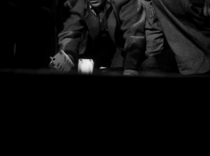 ถ้าผมไม่เคยเขียนถึง Dial M for Murder (1954) ที่ผกก. Hitchcock บอกว่าสร้างโทรศัพท์ขนาดใหญ่สำหรับถ่ายทำช็อตโคลสอัพ (กล้องสมัยนั้นยังไม่สามารถซูมระยะใกล้) คงไม่เอะใจว่าลูกเต๋าอันนี้ก็มีขนาดใหญ่กว่าปกติ แล้วตอน Johnny เอื้อมมือเข้ามาหยิบ กล้องจะค่อยๆเลื่อนขึ้นเพื่อไม่ให้เห็นวินาทีสลับเปลี่ยนลูกเต๋าขนาดปกติ ถือเป็นการตบตาผู้ชม = ต้มตุ๋นหลอกลวงผู้เล่นคนอื่นๆ