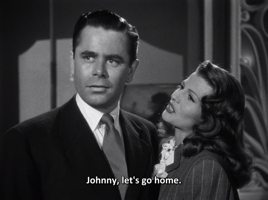 ผมมองอคติที่ Johnny มีต่ออดีตคนรัก Gilda เพราะเขายังคงรักเธอมากๆ ไม่ได้อยากเลิกราหย่าร้าง แต่ทว่ามิอาจอดรนทนสันดานธาตุแท้อีกฝ่าย จึงตัดสินใจหลบหนีสู่ดินแดนห่างไกล ทว่าโชคชะตานำพาให้พวกเขาหวนกลับมาพบเจอกัน แถมเธอแต่งงานใหม่กับ Ballin มันจึงกลายเป็นความขัดแย้งภายในอย่างรุนแรง เลยแสดงพฤติกรรมเหล่านั้นเพื่อปกปิดความรู้สึกแท้จริง … เป็นบทบาทที่ซับซ้อน การแสดงของ Ford ก็ดูมีมิติลุ่มลึก แต่กลับมิอาจสร้างความโดดเด่น ถูกกลบโดยความเจิดจรัสของ Gilda/Hayworth