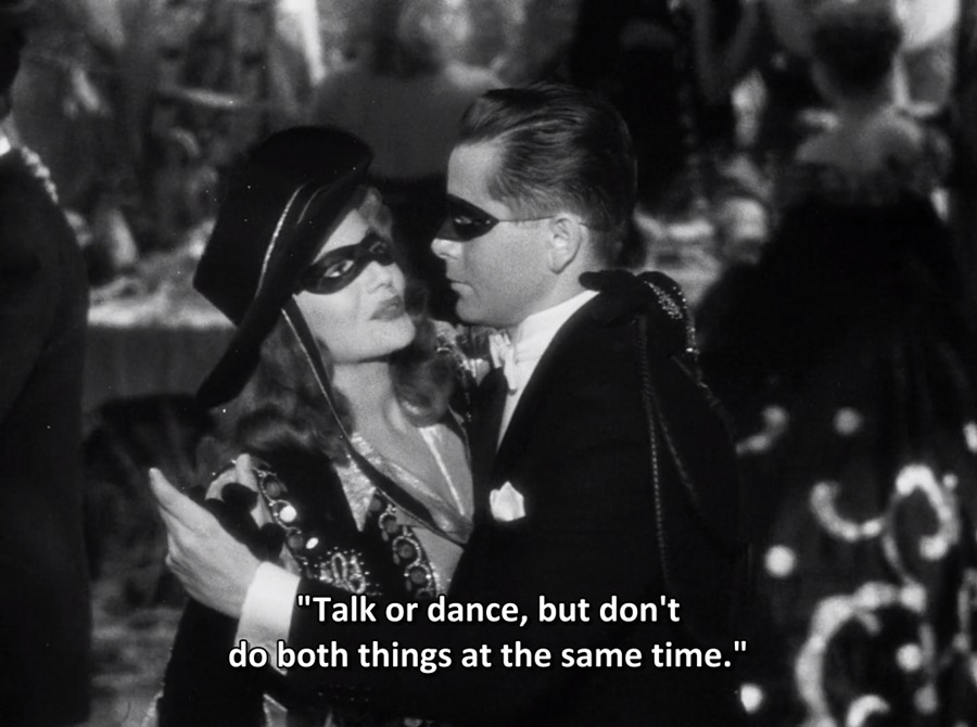 “I see you’re going to carry a whip. Have you warned Johnny, so he can also arm himself?” คำกล่าวที่ฟังเหมือนพูดเล่นๆของ Ballin แต่เป็นการบอกใบ้เหตุผลชุดสวมใส่ของ Gilda ทั้งๆเป็นแค่งานเริงระบำ Carnival เฉลิมฉลองปีใหม่ กลับติดอาวุธครบมือราวกับกำลังจะไปท้าสู้รบ ทำสงคราม(รัก)กับ Johnny