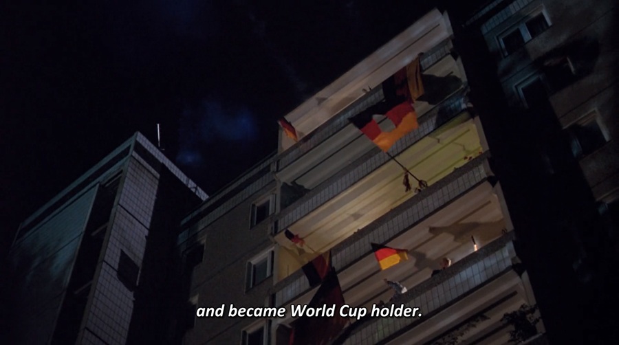 ผมแอบเสียดายที่ชัยชนะฟุตบอลโลกของทีมชาติ West Germany ไม่ได้เคลือบแฝงนัยยะอะไรไปมากกว่าการอ้างอิงประวัติศาสตร์ และแสดงให้เห็นว่าชาว East German ที่แม้ขณะนั้นยังไม่ได้รวมประเทศ (ต้องรอคอยเดือนตุลาคม) ต่างส่งใจเชียร์เพื่อนร่วมชาติเดียวกัน