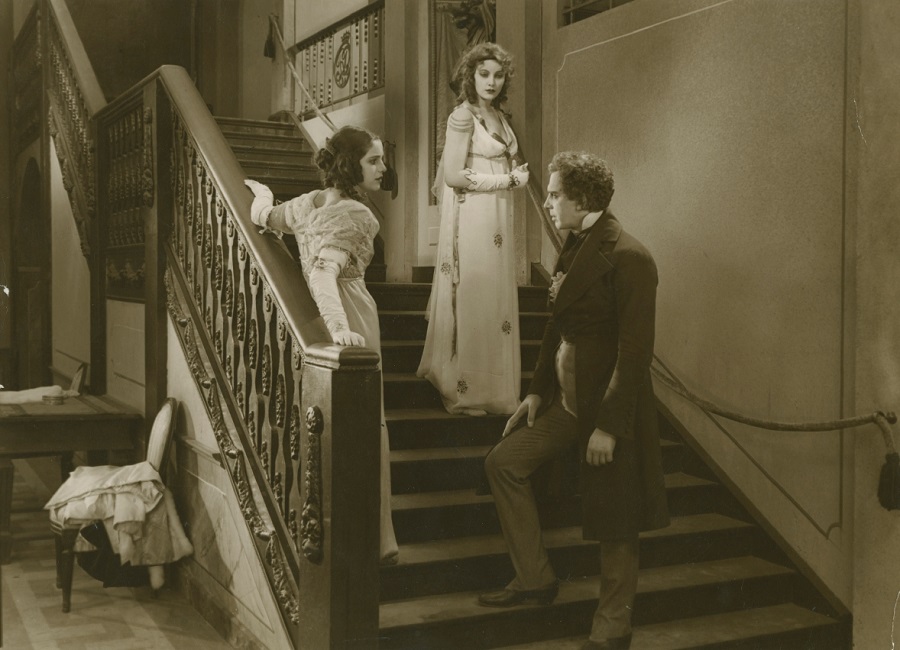 ตำแหน่งบันไดมีนัยยะที่เฉียบคมคายมากๆ คล้ายๆภาพน้ำตกตอนต้นเรื่อง สะท้อนถีง Gösta Berling ที่กำลังตกต่ำลงอีกครั้งจากความเข้าใจผิด ไม่ต้องบอกก็รู้ได้ว่า Ebba คงไม่ต้องการพบเจอหน้า/คบหาสมาคมด้วยอีกต่อไป (เดินขี้นบันไดไม่หันกลับมาเหลียวแลมองอีกต่อไป) แต่วินาทีนี้เองสำหรับ Elizabeth บังเกิดความสงสาร และเข้าใจหัวอกอีกฝ่าย (เดินลงบันไดพยายามฉุดรั้งไม่ให้เขาจากไป)