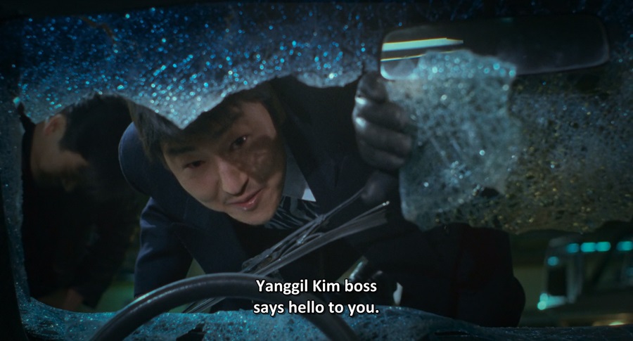 และเมื่อ Mak-dong ขับรถมาถึงลานจอดรถ โดยไม่รู้ตัวถูกคนทรยศ Pan-su ย้ายข้างไปอยู่ฟากฝั่ง Kim Yang-kil ตรงเข้ามาทุบทำลายกระจก สัญลักษณ์จุดแตกหักความสัมพันธ์