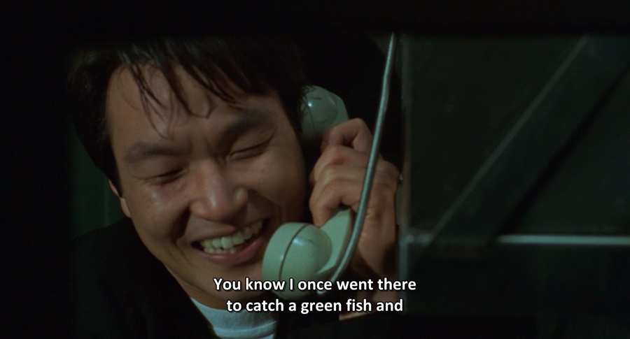 ไฮไลท์ของ Han Suk-kyu อาจจะเป็นหนึ่งในฉากยอดเยี่ยมที่สุดในการแสดงเลยก็ว่าได้ คือการดั้นสดระหว่างคุยโทรศัพท์กับพี่ชาย รับรู้ความตายกำลังคืบคลานเข้ามา น้ำเสียงสั่นๆ ธารน้ำตาไหลหลั่ง พยายามอดกลั้น แล้วหวนระลึกความทรงจำเกี่ยวกับ “Green Fish” ช่วงเวลานั้นมันอาจฟังดูไร้สาระ แต่สามารถสะท้อนเหตุการณ์บังเกิดขึ้นทั้งหมด! … ความหมกมุ่นในการจับเจ้าปลาสีเขียว ทำให้ทั้งเจ็บตัว ทั้งเสียเวลา และสูญเสียแทบจะทุกสิ่งอย่าง!