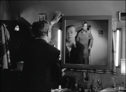 ชายขาพิการ Packett เจ้าของคณะคาร์นิวัล รับรู้เบื้องหลังความลับของ Laurie พยายามแบล็กเมล์ให้เธอตอบสนองตัณหาความใคร่ ต้องการจะขืนใจแต่หญิงสาวปฏิเสธคนไร้น้ำยา พอพระเอกมาถึงก็ยิงปืนใส่กระจก กล้องเคลื่อนเข้าหาพบเห็นภาพสะท้อนใบหน้าอันแตกร้าว นี่สื่อตรงๆถึงความฝันสลาย ชายคนนี้หมดโอกาสครอบครองเป็นเจ้าของเธอ
