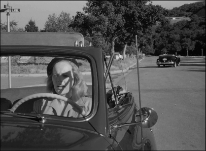 นี่เป็นช็อตพิศวงงงงวย ลายเซ็นต์ของผกก. Lewis เจ้าของฉายา “Wagon-Wheel Joe” กล้องถ่ายจากด้านหลังพวงมาลัยระหว่างขับรถหลบหนี แต่มันดูลอยๆ โยกไปโยกมา นั่นเพราะต้องเอาฐานตั้งพวงมาลัยออกไป ถึงสามารถถ่ายภาพมุมนี้ นักแสดงจึงแค่ถือพวงมาลัยลอยๆ … นี่แหละหนังเกรดบี!
