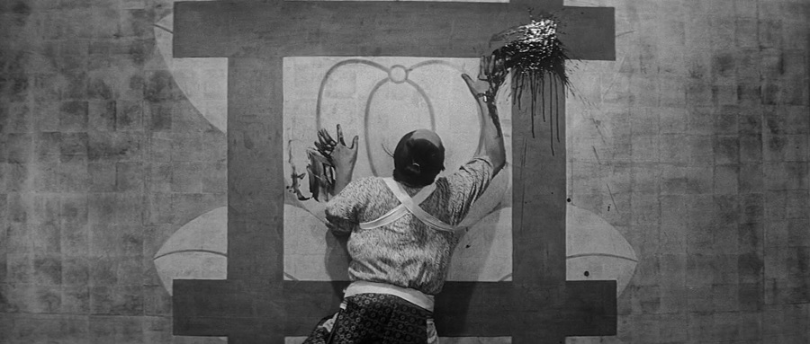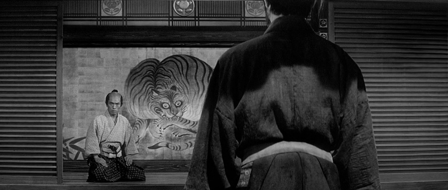 บ่อยครั้งพบเห็นมุมกล้องถ่ายติดด้านหลัง ซึ่งแสดงถึง ‘มุมมอง’ ของตัวละครนั้นๆ, ไฮไลท์ช็อตนี้คือภาพวาดเสือกัดมือตนเอง คงคล้ายๆสำนวนไทย ‘งูกินหาง’ หมายถึง เคยกระทำบางสิ่งอย่าง(ที่แย่ๆ) แล้วสิ่งๆนั้นได้หวนกลับเข้าหาตนเอง (คล้ายๆกรรมสนองกรรม) ซึ่งตรงกับเรื่องราวตระกูล Ii ในอดีตได้เคยทำกับ Chijiiwa Motome มาวันนี้ Tsugumo Hanshirō จึงต้องการล้างแค้นทวงคืน