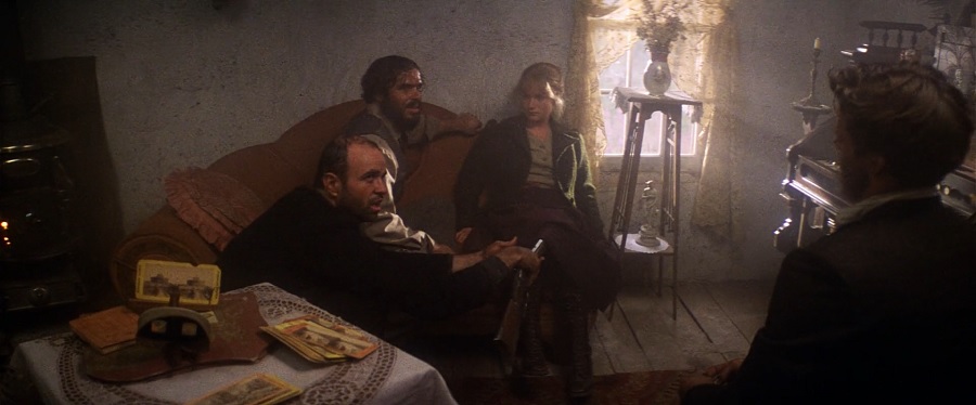 บอกตามตรง ผมโคตรรำคาญนักกายกรรมข้างนอกหน้าต่างอย่างรุนแรง แม้จะแฝงนัยยะถึงความอลวลของ ‘รักสามเส้า’ สะท้อนความสัมพันธ์ระหว่าง Ella Watson ที่มีต่อ Jim Averill และ Nate Champion (นี่เป็นฉากที่ Champion เข้ามาต่อรองร้องขอ Watson จาก Averill) แต่มันไม่ได้มีความสมเหตุสมผลว่าทำไมต้องมาโยนเล่นอยู่ตำแหน่งนั้น แถมไม่ยินยอมเคลื่อนย้ายไปไหนด้วยนะ ดึงดูดสายตา แก่งแย่งความสนใจผู้ชมไปจนหมดสิ้น