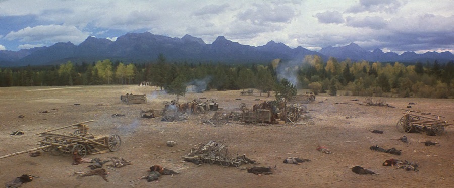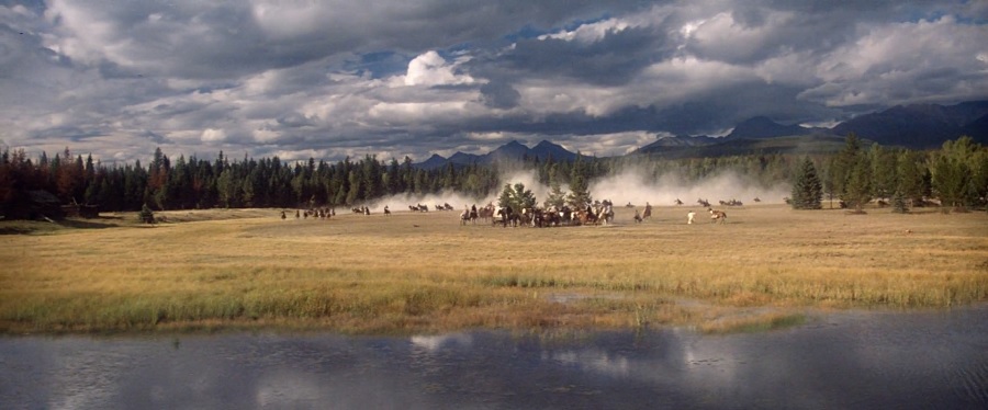 หลังการเริงระบำระหว่าง Jim Averill และ Ella Watson ในห้องโถง Heaven’s Gate ทั้งสองเดินออกมาภายนอก (น่าจะเป็นครั้งเดียวที่เห็นป้ายชื่อ Heaven’s Gate) ตรงไปยังทะเลสาป กล้องแพนนิ่งติดตาม จนเห็นทิวทัศน์ที่ชวนให้ตกตะลึง อ้าปากค้าง งดงามราวกับสรวงสวรรค์ … ใช้ประโยชน์จาก Panavision ได้งดงามมากๆ