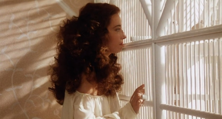 นกน้อยในกรง (พื้นหลังมีลวดลายเหมือนต้นไม้/ดอกไม้) [นี่เป็นช็อตสว่างที่สุดในหนังแล้ว]