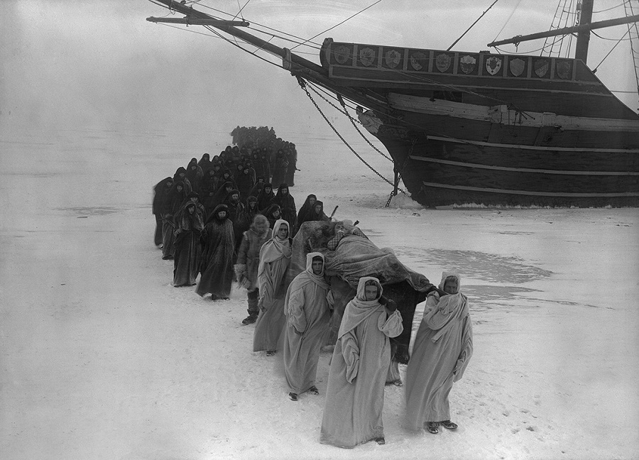 แต่ภาพที่ถือว่าเป็น ‘Iconic Shot’ มาถีงตอนปัจฉิมบท (Epilogue) การเดินเรียงแถวของสตรีสวมชุดดำ เพื่อมารับศพของ Elsalill แลดูราวกับใบมีดที่กรีดผ่านธารน้ำแข็ง เปิดประตูทางออกให้เรือลำนี้สามารถแล่นล่องสู่มหาสมุทรได้สำเร็จ
