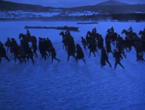 อย่างฉากแรกของหนัง, กองทัพของ King Johnan III นำพาขบวนนักโทษสงคราม เดินทางข้ามผืนแผ่นดินแดนน้ำแข็งอันกว้างใหญ่ เพื่อตรงไปสู่สถานที่สำหรับจองจำคุมขัง แต่งแต้มทาสีน้ำเงิน มอบสัมผัสอันหนาวเหน็บ เย็นยะเยือก สั่นสะท้านไปถีงทรวงใน