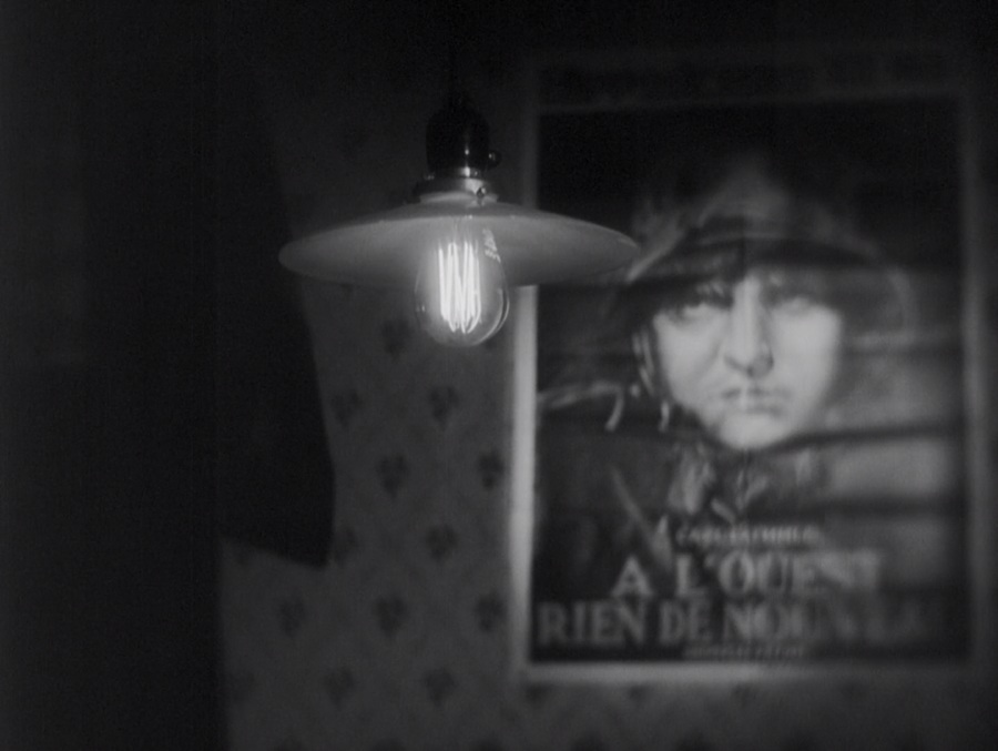 นี่คือโปสเตอร์ฝรั่งเศสของ All Quiet on the Western Front (1930) ประเด็นคือมันติดอยู่ยังอพาร์ทเม้นท์ของ Hiroshi & Kazuko แถมมีสภาพยับยู่ยี่ ราวกับพานผ่านสงครามมาจริงๆ ซึ่งสามารถสะท้อนถึงการต่อสู้ระหว่างพี่น้อง เต็มไปด้วยความขัดแย้ง ครุ่นคิดเห็นต่าง ทะเลาะวิวาทไม่เว้นวัน