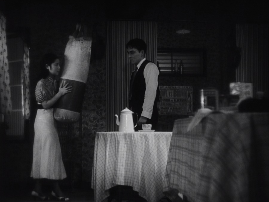 ไม่ใช่ว่า Joji หวนกลับมาซ้อมมวย แต่หลังจากต่อยสั่งสอน Hiroshi ที่ทำให้พี่สาว Kazuko อุตส่าห์มารอรับร่ำร้องไห้ นี่คือการระเบิดระบายอารมณ์ แสดงความไม่พึงพอใจไอ้เด็กเมื่อวานซืนคนนั้น ทำไมถึงไม่รู้จักครุ่นคิดถึงหัวอกคนผู้อื่น โชคดีขนาดไหนยังมีสมาชิกครอบครัวเหลืออยู่