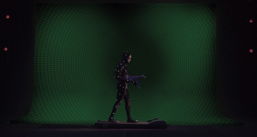 In the sequence where Denis Lavant’s body is covered in white sensors, he’s like a worker specialized in motion capture. Not so unlike Chaplin in Modern Times – except that the man is no longer caught up in the cogs of a machine but in the threads of an invisible web.