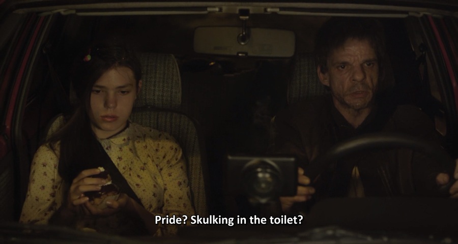- บิดา Le Père ขับรถมารับบุตรสาว Angèle (รับบทโดย Jeanne Disson) หลังงานเลี้ยงปาร์ตี้ ก่อนมีเรื่องทะเลาะวิวาทเมื่อรับรู้ว่าเธอเอาแต่หลบซ่อนตัวอยู่ในห้องน้ำ