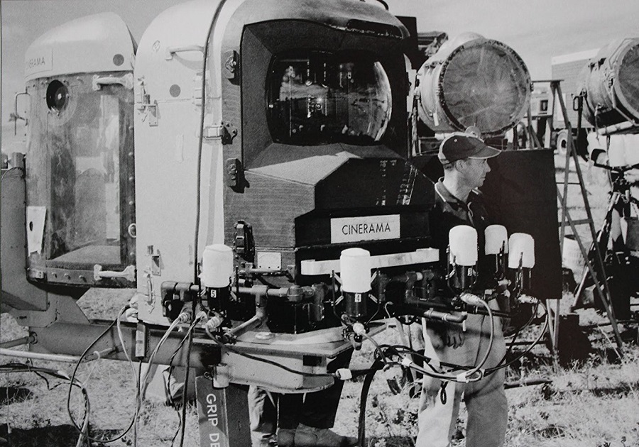 นี่คือภาพของกล้อง Cinerama ที่ใช้ในการถ่ายทำหนังเรื่องนี้ มีขนาดใหญ่เทอะทะ น้ำหนัก 250 ปอนด์ (113 กิโลกรัม) นี่ยังไม่รวมฟีล์มสามม้วน กับอุปกรณ์บันทึกเสียง ที่รวมๆแล้วหนักประมาณ 3,000 ปอนด์ (1 ตันกว่าๆ) สิบคนยังไม่รู้จะยกไหวไหม แบบนี้ใครจะนิยมใช้กัน แถมภาพที่ออกมายังมีขนาดกว้างมโหฬาร ไม่สามารถถ่ายช็อต Close-Up นี่ทำให้ผู้กำกับ John Ford ยังต้องบ่นออกมา