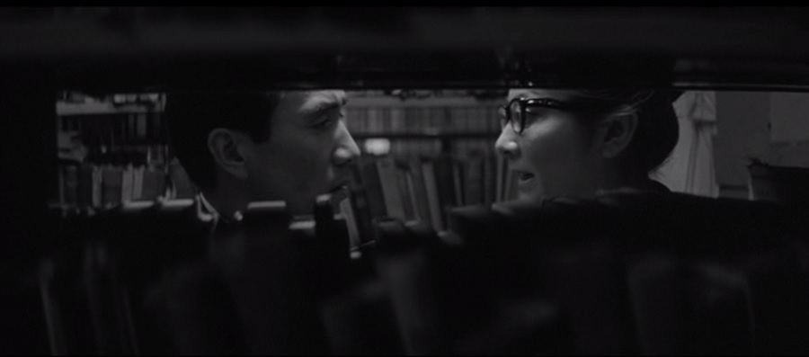 นี่ก็เป็นอีกช็อตที่เลือกมุมกล้องได้เจ๋งมากๆ Koichi แอบคบชู้สาวแว่น Yoshiko ภาพถ่ายผ่านชั้นวางหนังสือ เห็นพวกเขาเแค่เพียงเสี้ยวส่วนของใบหน้า เรียกว่าซ่อนเร้นกันสุดๆในสถานที่มีเพียงเราสอง