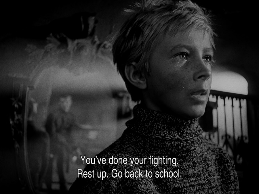 - หลังจากเด็กชายสัปหงก Lt. Galtsev เข้ามาโอบอุ้ม พาไปนอนบนเตียง … ซีนเล็กๆนี้แฝงมนุษยธรรมที่งดงามมากๆ กับไอ้เด็กเวรที่เพิ่งมีปากเสียง แต่สุดท้ายเด็กก็คือเด็ก ยังต้องการผู้ใหญ่คอยดูแล