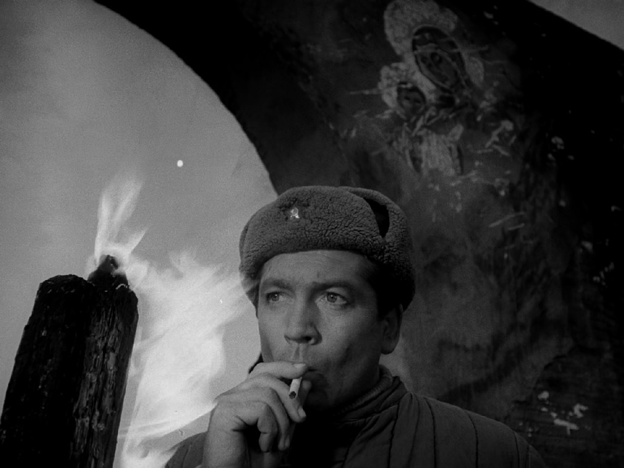 แซว: ผมจงใจเลือกช็อตที่ Lt. Galtsev ทำการปาดเหงื่อบนหน้าผาก แบบเดียวกับตอนต้นเรื่องที่มารดาของ Ivan ก็ปาดเหงื่อท่วงท่าเดียวกัน!