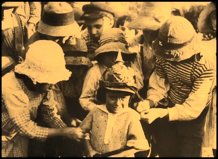 เด็กหญิง Angèle ถูกเพื่อนๆกลั่นแกล้งให้สวมหมวกทหาร แต่เจ้าตัวไม่ยินยอมพร้อมใจ วิ่งกลับบ้านหาแม่ร่ำร้องไห้ แล้วโยนหมวกใบนั้นทิ้งยังกองไฟ … เหล่านี้เป็นสัญลักษณ์ที่ผู้กำกับ Gance ต้องการปลูกฝังเยาวชนคนรุ่นใหม่ เด็กๆยังไม่รับรู้ด้วยซ้ำว่าสงครามคืออะไร แต่กลับถูกเสี้ยมสั่งสอน ควบคุมครอบงำ บีบบังคับ ออกคำสั่ง ใช้กำลังรุนแรง มันหาใช่สิ่งถูกต้องเหมาะสม ควรแสดงออกว่าไม่เห็นด้วย ปฏิเสธ ทำลายทัศนคติ(หมวกใบนั้น)ทิ้งไป