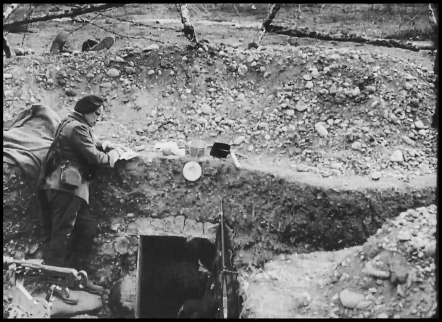 ฉากนี้ไม่ใช่แนวหน้าสนามรบนะครับ เป็นฉากหลุมหลบภัยสร้างขี้นมาแนวหลัง ไม่งั้นนักแสดงจะกล้าเพิกเฉยลอยชาย เขียนจดหมายท้าความตายอยู่อีกหรือ … สาเหตุที่ François กระทำการบ้าบิ่นขนาดนี้ ก็เพราะต้องการประชดประชันตนเอง เหมือนส่งภรรยาไปตาย เลยไม่ค่อยอยากมีชีวิตอยู่ต่อสักเท่าไหร่