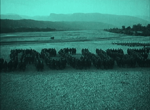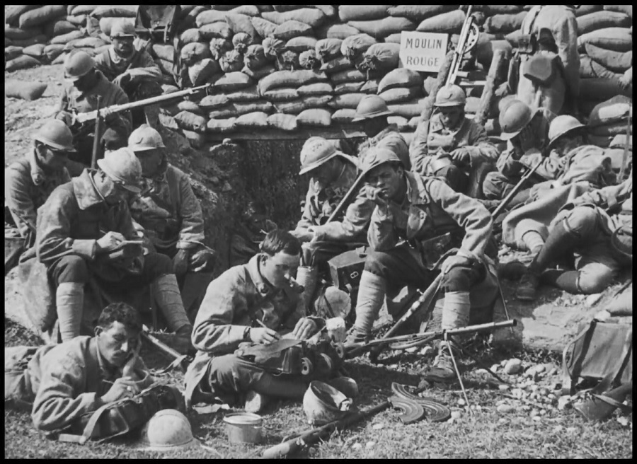 นี่คือทหารที่เข้าร่วมรบแนวหน้าจริงๆ อีกไม่กี่วันถัดมาจะเข้าร่วม Battle of Saint-Mihiel วันที่ 12-15 กันยายน 1918 ซี่งผู้กำกับ Gance ก็ได้ถ่ายทำฟุตเทจจากช่วงเวลาดังกล่าว ระเบิดจริง ตายจริง ร้อยเรียงตัดต่อแบบเร็วๆด้วยเทคนิค ‘Rapid Editing’ ไม่ได้อยากจะมุ่งเน้น ให้ความสำคัญมากนัก แค่ช่วยเสริมพลังความสมจริงให้หนัง ผู้ชมเห็นแล้วเกิดความตื่นตระหนกตกใจ ตระหนักได้ว่าความตายปรากฎบนฟีล์มเรื่องนี้จริงๆ