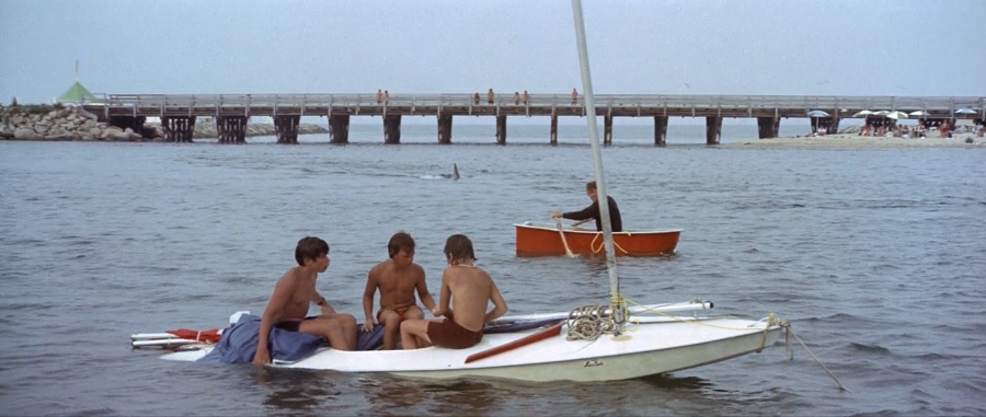 อย่างช็อตนี้ให้ความรู้สึกเหมือนเจ้าฉลามกำลังจับจ้องมอง แหวกว่ายตรงเข้าหา ก่อนตัดภาพไปยังบนพื้นผิวน้ำ พบเห็นหญิงสาวกำลังกรีดร้อง ตะเกียกตะกาย ตะโกนขอความช่วยเหลือ เหมือนมีอะไรไม่รู้มางับเท้าของตนเอง