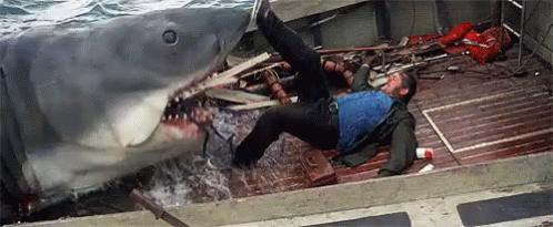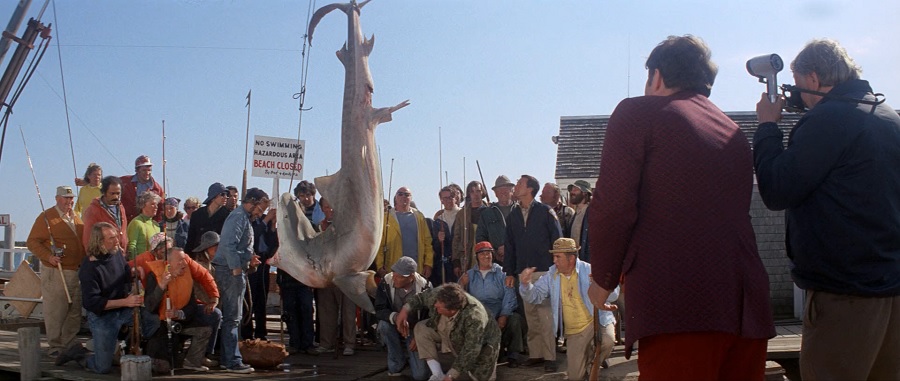 Jaws (1975) ภาพยนตร์ขนาดยาวลำดับสองของผู้กำกับ Steven Spielberg ที่ประสบหายนะมากมายระหว่างการถ่ายทำ ความขัดแย้งระหว่างสองนักแสดงนำ Robert Shaw กับ Richard Dreyfuss (แบบเดียวกับตัวละคร Quint และ Hooper) แต่ปัญหาใหญ่โคตรๆคือกลไกฉลามไม่ยอมทำงาน (คือมันทำงานบนบกได้ดี แต่พอลงน้ำกลับติดๆขัดๆ) ทำให้โปรดักชั่นล่าช้า งบประมาณบานปลาย แต่เมื่อนำออกฉายสามารถทุบทำลายสถิติมากมาย กลายเป็นภาพยนตร์ทำเงินสูงสุดตลอดกาล และคว้ารางวัล Oscar อีกหลายสาขา