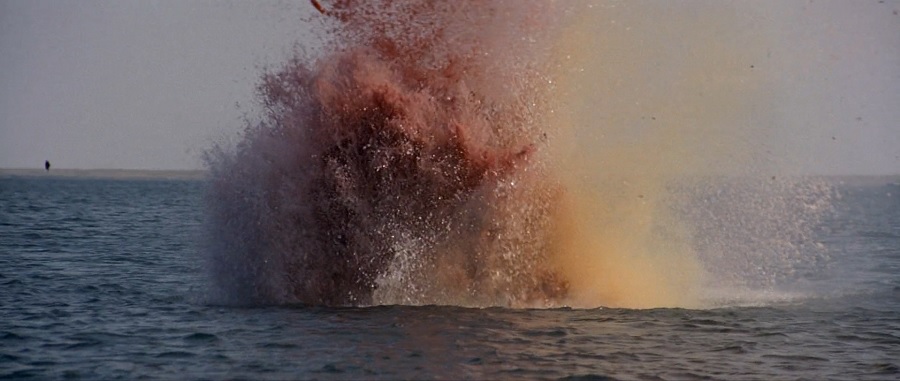 สำหรับคนที่เข้าในแนวคิดเกี่ยวกับการจัดแสง จะตระหนักว่าช็อตนี้ไม่ได้ถ่ายทำในท้องทะเล เพราะมีการสาดแสงสป็อตไลท์ลงมาจากเบื้องบนพื้นผิวน้ำ และไม่มีทางที่พระอาทิตย์ยามอรุณรุ่ง(หรือพลบค่ำ)จะมอบแสงขาวลักษณะนี้ … ฉากนี้ถ่ายทำในแท้งค์น้ำสตูดิโอ M-G-M