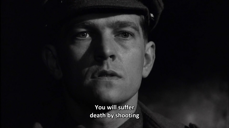ช็อตที่นายทหาร Hamp รับรู้คำพิพากษาตัดสิน ก็ถ่ายแบบตรงๆง่ายๆ ใบหน้าตัวละครที่ไม่รู้จะแสดงปฏิกิริยาอะไรออกมา ครุ่นคิดคาดไม่ถึง ก่อนทรุดลงนั่งคุกเข่า สอบถามถึงวันเวลาตาย พรุ่งนี้เช้าก่อนรุ่งสาง ทำได้แค่เพียงเงียบงัน