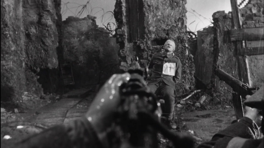 ฉากการประหารชีวิตยิงเป้า มีการนำเสนอ ‘Point-of-View’ ผ่านกระบอกปืนทหารนายหนึ่ง (ซึ่งก็คือผองเพื่อนที่ร่วมทุกข์ร่วมสุขกับนายทหาร Hamp) ซึ่งจะค่อยๆเคลื่อนเลื่อน เบี่ยงเบนให้พลาดเป้าหมาย ต้องถือว่านี่เป็น ‘conscience shot’ ที่สามารถสร้างจิตสามัญสำนึกให้ผู้ชม ใครกันจะอยากเข่นฆ่าพวกพ้อง ผองเพื่อน ต่อให้อีกฝ่ายกระทำสิ่งผิดกฎหมาย แต่มันสมควรแก่ความตายเชียวหรือ?
