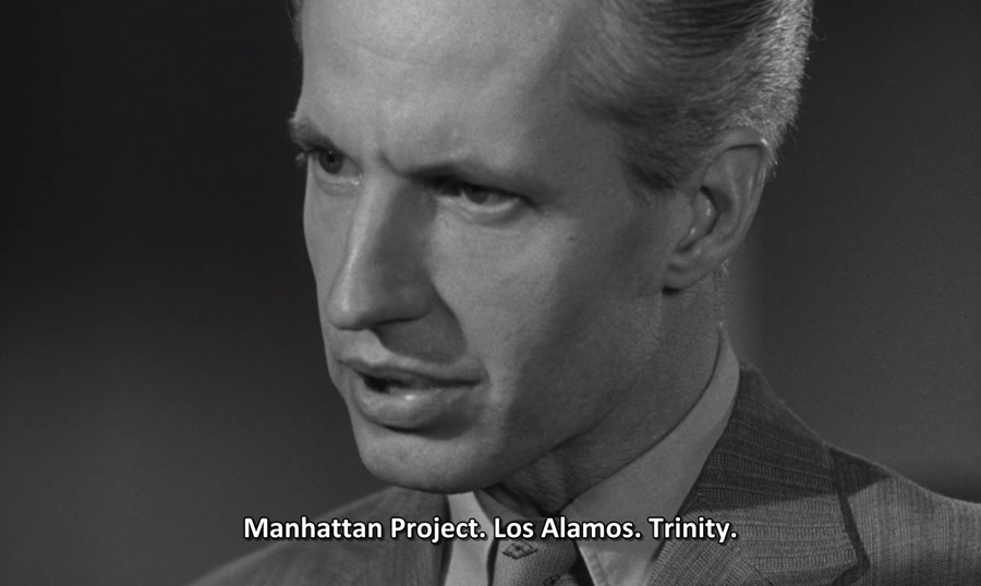 ผู้ชมสมัยนั้นอาจยังไม่ค่อยเข้าใจอิทธิฤทธิ์ของ MacGuffin อะไรคือ Manhattan Project? สัมผัสแล้วมอดไหม้ ทำไมมีรัศมีความร้อนแผ่ออกมา? แต่เชื่อว่าคอหนังรุ่นใหม่พบเห็นแล้วย่อมสามารถรับรู้ได้โดยปริยาย ว่าต้องการสื่อถึงระเบิดปรมาณู อาวุธนิวเคลียร์ อานุภาพทำลายล้างมหาศาล … แต่ก็อาจผิดหวังที่แค่มอดไหม้บ้านหลังหนึ่ง แถมใช้เวลาหลายนาที (มันไม่ใช่ว่าระเบิดต้องตูมตาม เสี้ยววินาทีสำแดงอานุภาพมหาศาลไม่ใช่ฤา?)