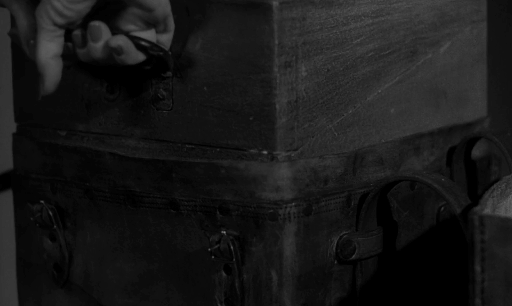 ห้องแห่งนี้ยังปกคลุมด้วยความมืดมิด ใบหน้าของ Mike ตอนเดินเข้ามาอยู่ในเงาพอดิบดี (อาจสื่อถึงหญิงสาวไม่รับรู้ว่าอีกฝ่ายเป็นใคร? มาดีหรือมาร้าย?) และเมื่อเขาจากไป เธอหวนกลับนั่งที่เก่า แต่กระเป๋าเดินทางบดบังใบหน้าพอดิบดีเช่นกัน (แต่คราวนี้เหมือนไม่ต้องการให้ผู้ชมพบเห็นปฏิกิริยา/ลับลมคมในของเธอเสียมากกว่า)