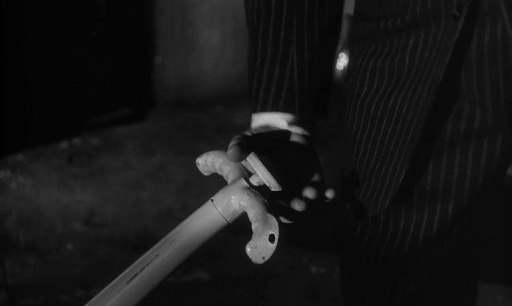 หนึ่งในลายเซ็นต์ของหนังนัวร์ คือการละเล่นกับแสง-เงา ลอดผ่านมู่ลี่/บานเกล็ด ทำให้พบเห็นเหมือนซี่กรง สร้างสัมผัสราวกับถูกควบคุมขัง เจ้าหน้าที่ตำรวจกำลังสอบปากคำ Mike ด้วยถ้อยคำดูถูกเหยียดหยาม ให้คำนิยามนักสืบเอกชนทำคดีหย่าร้างว่า “Bedroom Dick” สะท้อนความอัปลักษณ์ โฉดชั่วร้าย ด้านมืดจิตใจมนุษย์ และความคอรัปชั่นขององค์กรตำรวจ