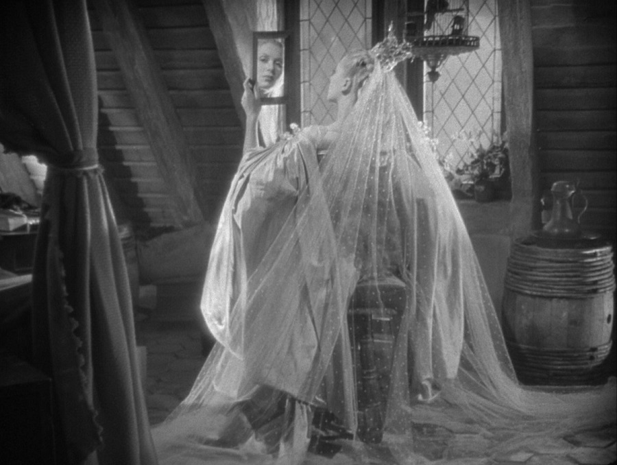 Belle ขณะที่เคลิ้บเคลิ้มหลงใหลในความงามของตนเอง (เพราะเธอกำลังตกหลุมรักคลั่งไคล้ Bête) จ้องมองผ่านกระจกใบเล็กๆเห็นเฉพาะหน้า นั่นเป็นภาพสะท้อนตัวเธอเองขณะนั้น หวนคำนึงคิดถึงคนรัก