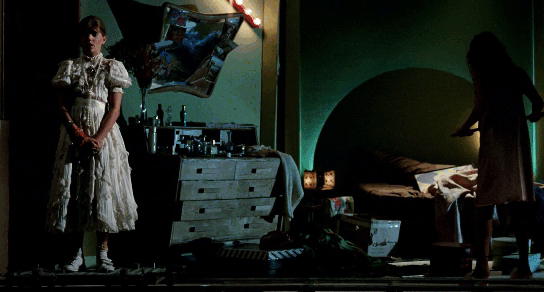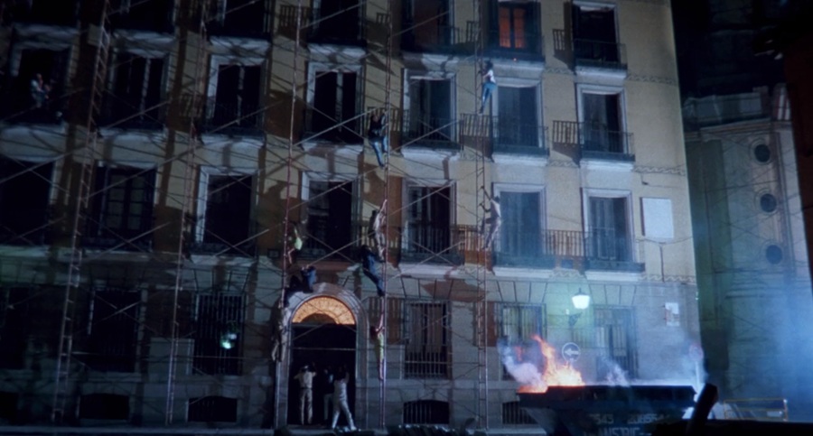 แต่หลังจากประสบอุบัติเหตุ สูญเสียความทรงจำ ตำรวจสองพ่อ-ลูก (Fernando Guillén Cuervo และ Fernando Guillén เป็นพ่อ-ลูกในชีวิตจริง) เมื่อเดินทางมาค้นหาหลักฐานคดีฆาตกรรม อพาร์ทเมนท์แห่งนี้ได้แปรสภาพสู่หนังนัวร์ บรรยากาศทะมึน อึมครึม ปกคลุมด้วยเงามืด แสงสว่างลอดผ่านบานเกร็ด อิทธิพลงานศิลปะ Diego Velázquez