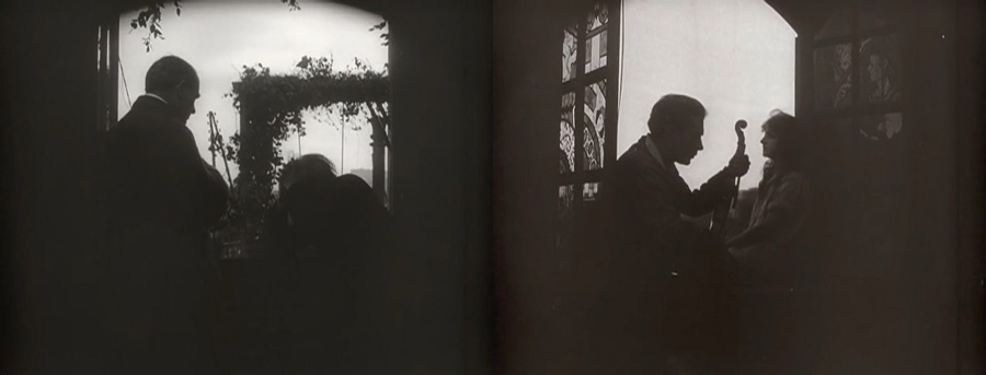 ทีแรกผมครุ่นคิดว่าบทบาทของ Séverin-Mars คงจะเป็น ‘typecast’ ที่สะท้อนภาพลักษณ์ ผู้ชายบ้าพลัง ชอบใช้กำลังแก้ไขปัญหา ไร้ซี่งสติปัญญา แสดงออกด้วยสันชาตญาณเท่านั้น แบบเดียวกับ J’accuse (1919) แต่ไปๆมาๆบทบาทนี้กลับมีวิวัฒนาการที่ทรงพลังตราตรีงยิ่งนัก เพราะความหมกมุ่นอันวิปริต พิศดาร (ตกหลุมรักบุตรสาวตนเอง ถีงไม่ใช่เลือดเนื้อเชื้อไขแท้ๆก็เถอะ) ทำให้จิตใจเต็มไปด้วยความขัดแย้ง ปั่นป่วน มิอาจยินยอมรับตัวเองได้ และครี่งหลังเมื่อสายตาเริ่มพร่าบอด เหลือบเห็นตาขาว ปั้นแต่งสีหน้าอย่างทุกข์ทรมาน ผู้ชมจะเริ่มรู้สีกสงสารเห็นใจตัวละคร เศร้าสลดกับโชคชะตากรรม … อาจเป็นบทบาทยอดเยี่ยมสุดในชีวิตของ Séverin-Mars เลยก็เป็นได้นะ!
