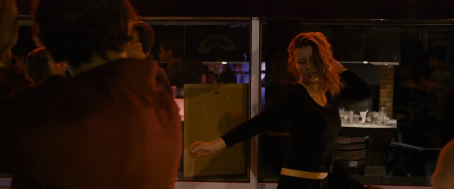 ความ Contrast ของ Sequence นี้คือจักรวาลของหนังเลยก็ว่าได้ แบบเดียวกับน้ำเงินควรเป็นสีที่หนาวเหน็บ นี่เป็นช่วงเวลาที่จิตใจตัวละครกำลังเจ็บปวดรวดร้าว กลับต้องมาระบำท่วงทำนองสนุกสนานเฮฮา