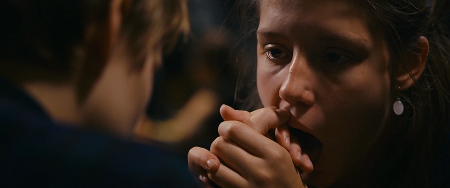ความน่ารัก บริสุทธิ์ นงเยาว์วัย สายตาเป็นประกายสดใส ทรงผมยุ่งๆไม่เป็นระเบียบ และฟันกระต่ายคู่หน้าทำให้ริมฝีปากบางครั้งเผยออกกว้าง นั่นทำให้ภาพลักษณ์ภายนอกของ Exarchopoulos ช่างแลดูไร้เดียงสาเสียจริง ระดับกล้อง Close-Up พบเห็นทุกริ้วร่องรอยขยับเคลื่อนไหว ถ่ายทอดอารมณ์ความรู้สึกจริงบ้าง-เท็จบ้างจากขั้วหัวใจ ผู้ชมสามารถสัมผัสจับต้องได้โดยทันที