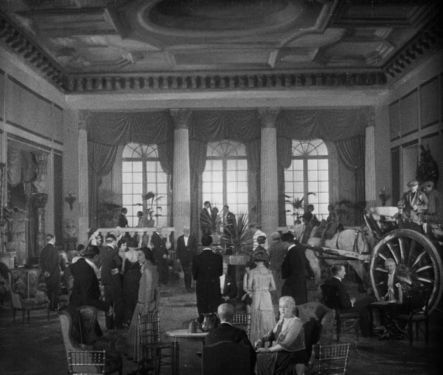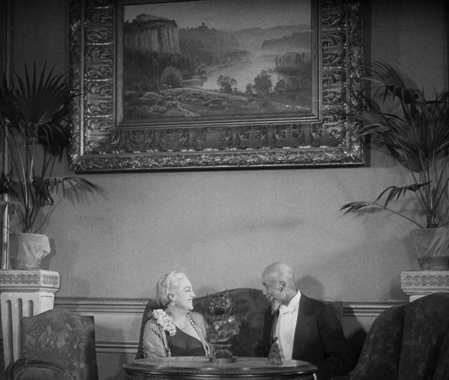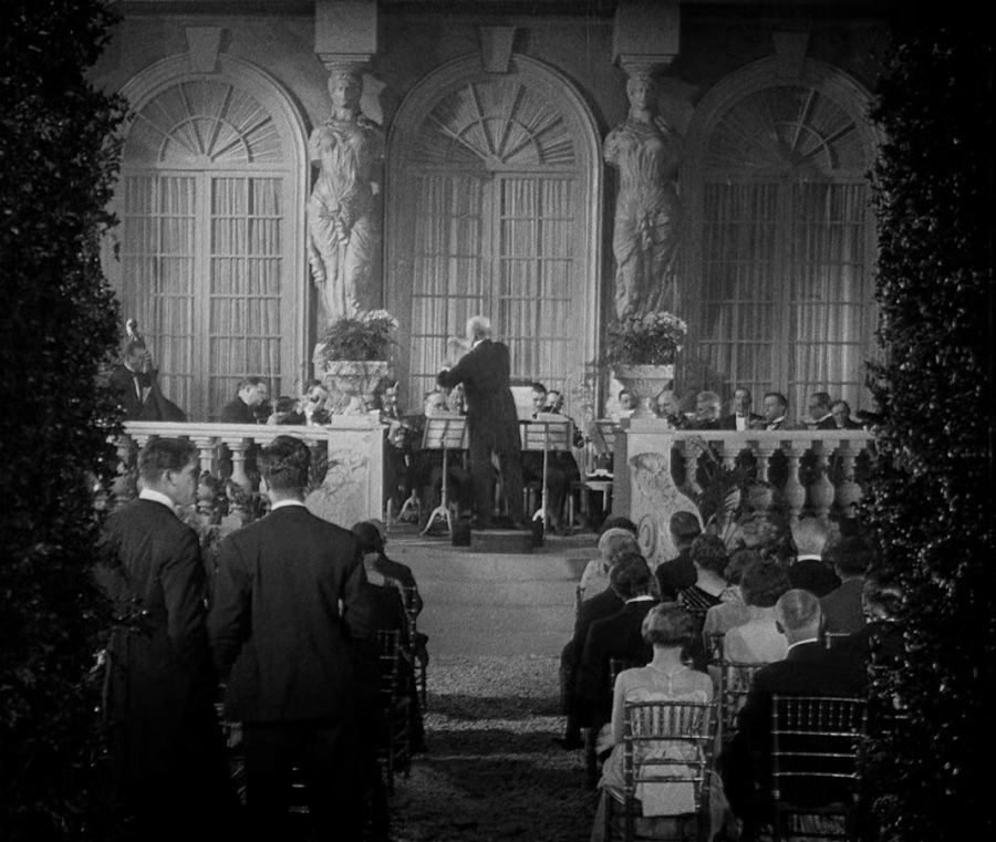 งานเลี้ยงจัดขี้นโดยกลุ่มชนชั้นกลาง สังเกตว่าช็อตนี้จงใจถ่ายให้ติดภาพวาดเหนือศีรษะ ถีงไม่รับรู้พวกเขาสนทนาอะไรกัน แต่สามารถสื่อความถีงความเพ้อฝัน ความครุ่นคิดล่องลอยไปไกล เรื่องราวไม่ได้สาระอะไรมากมาย