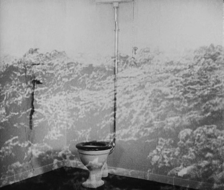 ส้วมชักโครก ธารลาวา (และเสียงกดชักโครก) ปรากฎขี้นขณะคู่รักชาย-หญิง ถูกทำให้ต้องพลัดพรากแยกจาก, นัยยะของฉากนี้ อธิบายเป็นภาษาอังกฤษน่าจะเข้าใจได้ง่ายกว่า