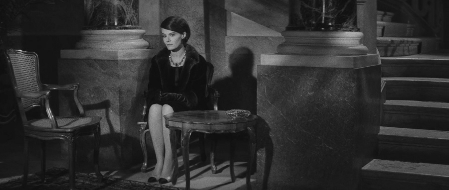 The term “sleeping beauty” provides, I think, a fairly good transition to Last Year at Marienbad—or Sleeping Beauty of the International Set, the high-fashion experimental film, the snow job in the ice palace. Here we are, back at the no-fun party with non-people, in what is described to us as an “enormous, luxurious, baroque, lugubrious hotel—where corridors succed endless corridors.”