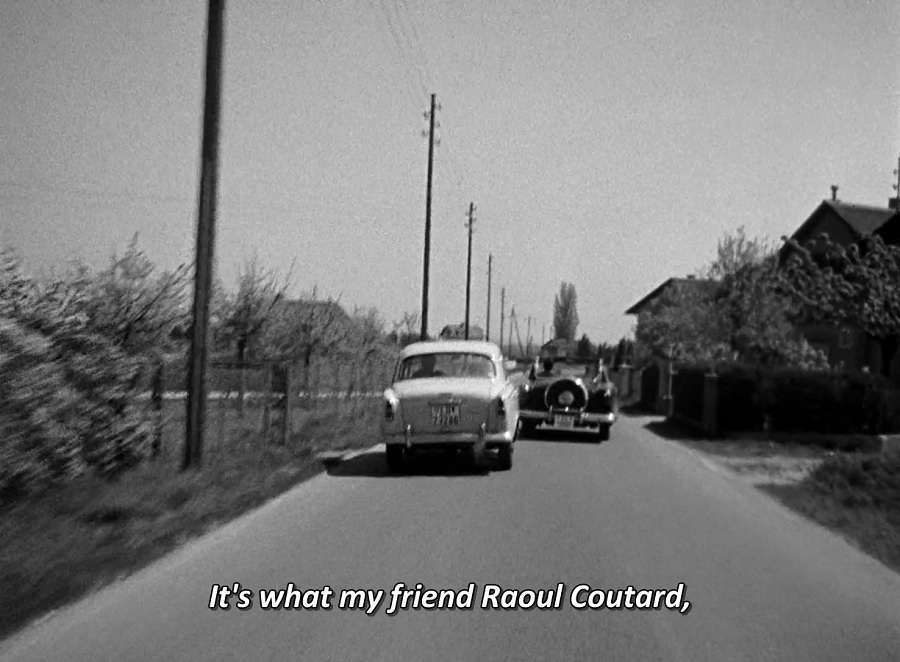 ผมแยกแยะน้ำเสียงไม่ออกว่าคนพูดประโยคนี้คือผู้กำกับ Godard หรือนักแสดงนำ Michel Subor เพราะสำหรับผู้ชมที่รับรู้จัก Raoul Coutard ก็น่าจะได้ขำกลิ้งตกเก้าอี้ ผมก็คนหนึ่งมิอาจหุบหัวเราะอยู่หลายวินาที … คำพูดของ Coutard น่าจะสื่อถึงกองถ่ายภาพยนตร์ของ Godard มากกว่านะ!