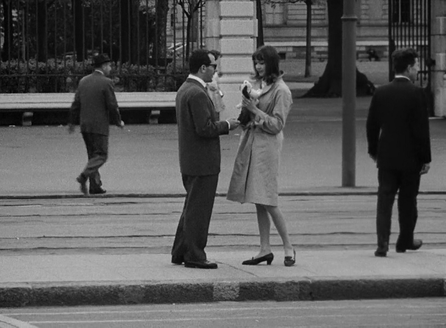 ผู้กำกับ Godard ปรากฎตัวในหนังมากกว่าแค่การรับเชิญ (เพราะพบเห็นมากกว่าหนึ่งฉาก) ในครั้งแรกเหมือนกำลังเกี้ยวพาราสี มอบของขวัญตุ๊กตาสุนัขรับใช้ให้กับ Anna Karina (สื่อความตรงๆถึงมุมมองของเขาต่อเพศหญิง) แต่แท้จริงแล้วเขาคือวิศวกรผู้ฝักใฝ่ FLN ซึ่งเจ้าสุนัขตัวนั้นน่าแอบซ่อนอุปกรณ์ดักฟัง กระมัง! … นี่ค่อนข้างชัดเจนถึงการแสดงความคิดเห็นทางการเมือง แต่ไม่เชิงว่าเขาเห็นด้วยกับ Front de libération nationale นะครับ!